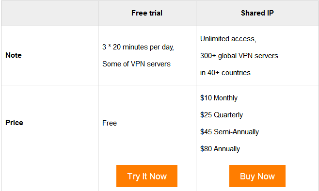 FlyVPN costs 9.9 USD monthly regarding to Shared IP plan. You could save 40USD with yearly plan which takes 80 USD. It is not that cheap. But considering the reliance and stability, it is acceptable for most of its users. Besides, they have 30-day money back guarantee, which clearly shows their confidence on thier produce. FlyVPN also adopts local payment—— payssion so that users around the world could use the local currency for getting FlyVPN service. They also support bitcoin as well.